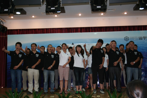 這次股東大會上,錦華的金牌培訓師——主材部曹總,給大家?guī)砹巳齻€拓展游戲:五張撲克大小PK、模仿不走樣、數(shù)數(shù)字;帶來現(xiàn)場歡樂的同時,讓所有的人都學會反思和總結(jié);團隊的精神得到充分的體現(xiàn)。淮安分公司的市場經(jīng)理王志波說,“在南京大區(qū),感受到了溫暖,有了回家的感覺。”這就是集體精神的魅力所在。